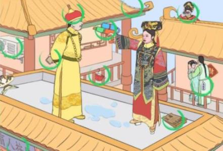 1、画面左边的屋顶上面有【避雷线】、皇上的帽子是【马桶搋】、
