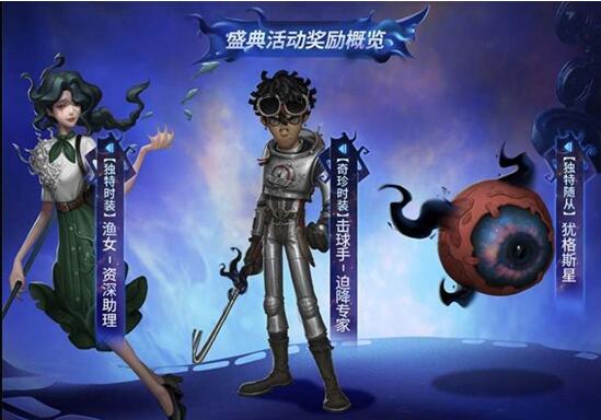 1、深渊6的奖励皮肤如下图所示,分别是【奇珍时装】击球手-迫降专家、【独特时装】渔女-资深助理、【独特随从】犹格斯星;