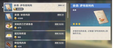 1、「理想情况」原料理是「萨布兹炖肉」,配方可以在须弥城「兰巴德酒馆」处够买获得;