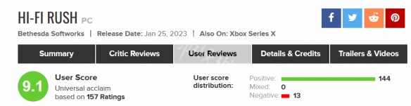 此次HiFi Rush在M站用户评分为9.1分,是比较高的,所以可以说游戏品质十分不错,推荐大家入手。