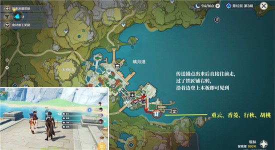 1、码头,重云+香菱+行秋+胡桃。