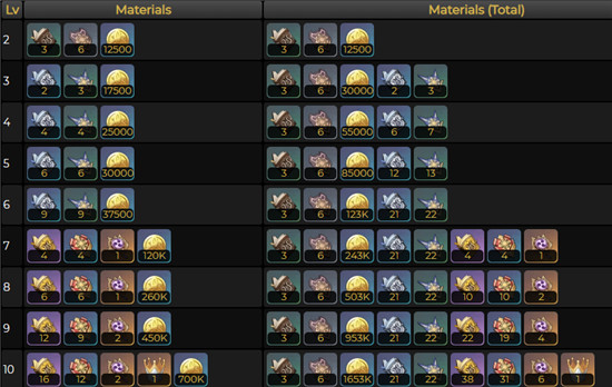 将任意技能升级至10级需要新兵的徽记*6、士官的徽记*22、尉官的徽记*31、诗文的教导*3、诗文的指引*21、诗文的哲学*8、无心的渊镜*6、智识之冕*1、1652.5K摩拉。