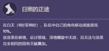 在白天(6时至18时),队伍中自己的角色移动速度提高10%。