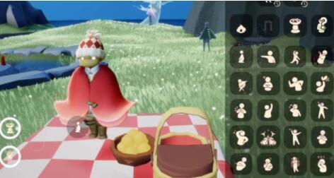 1、野餐篮是一个背饰道具,携带效果如下图所示,装备后可以通过动作栏拖动到游戏内摆放,摆放效果可以参考图2,可以邀请其他玩家一起坐下,跟去年的茶桌一样有互动动作;