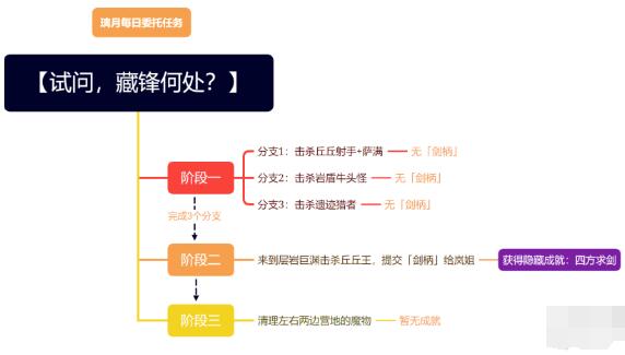 需要随机接取到「璃月每日委托任务」——【试问,藏锋何处?】,完成第一阶段3个分支后,再接取一次,去层岩巨渊提交「剑柄」给岚姐即可获得,至少需要4天。