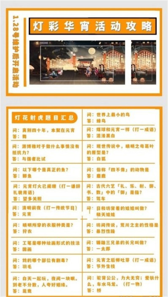 灯彩华宵灯花射虎灯谜题目及答案大全