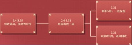 1、活动期间,来到页面即可无条件领取,领取后截至3.31日,玩家每周游戏一局,累计5周即可保留,否则道具将被回收,若您在2.1-2.3活动中成功预定,只需累计4周即可保留;