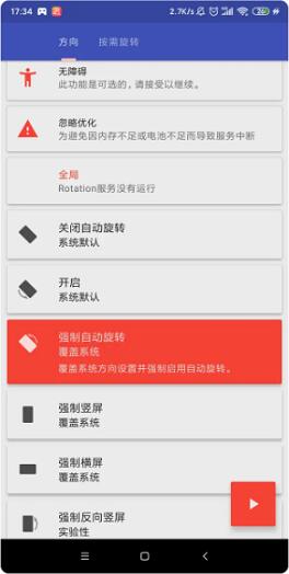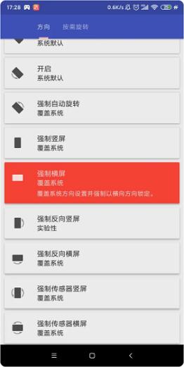 5、返回主页,选择你想要开启的旋转功能即可,推荐使用“强制旋转”功能,软件会根据手势自适应改变方向。