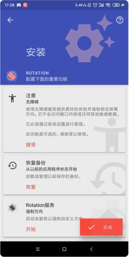 3、完成配置后会自动返回开始界面,点击任意一个功能,如“强制旋转(将你手机的方向固定横屏)”