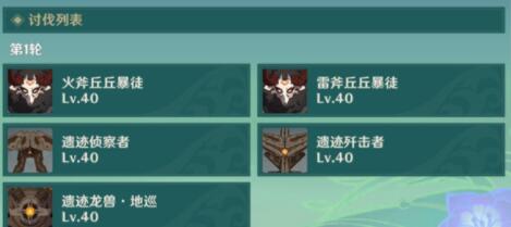 第一轮:火斧丘丘暴徒+雷斧丘丘暴徒+遗迹系列魔物。