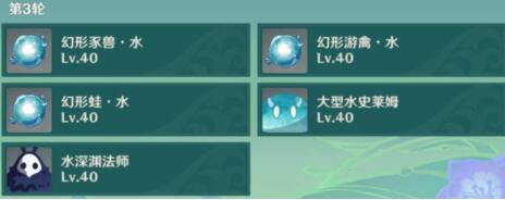 第三轮:幻形豕兽+幻形游禽+幻形蛙+大型水史莱姆+水深渊法师。