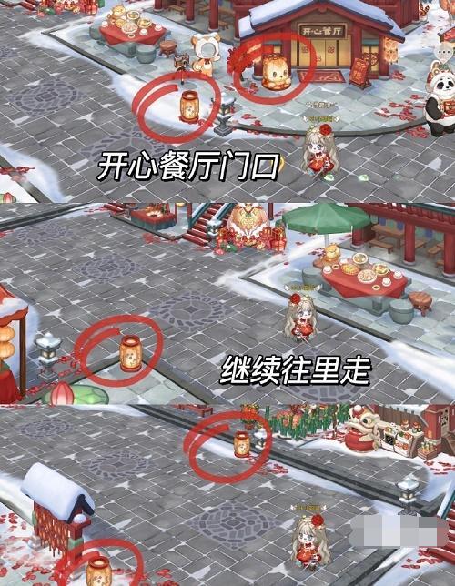 2、10个灯笼具体位置也可以参考上图的红圈,每天每日随机。