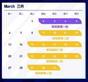 2、三月,常规赛第二轮(3月9日~4月2日)