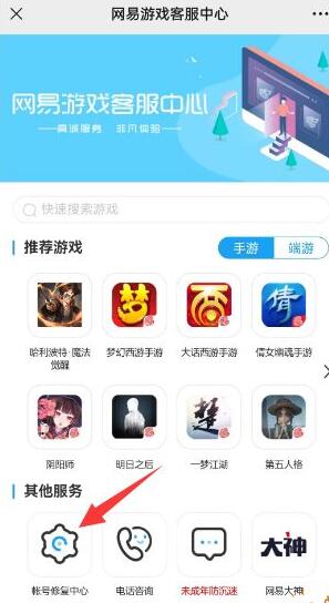 5、当然你也可以在网易游戏客服中心,点击左下角的账号修复中心。
