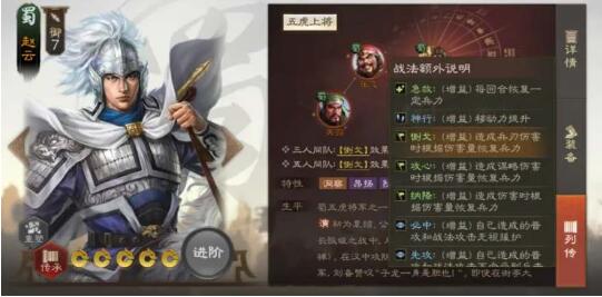 诸葛亮、马超加入后激活五虎将羁绊,可以提升输出能力,张飞的群体减伤和关羽的压制力配合,整体输出比较暴力。