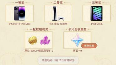 集满11张卡片之后,就可以领取40原石。不用担心收集卡片麻烦,完成了任务,第一天基本都能集满。还能参与抽奖,不会真有人抽到iPhone吧,不过有摩拉和矿也不错。