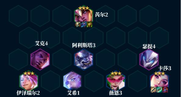 适用情形:卡莎体系中最常规的阵容玩法羁绊组成:4怪兽 4情报特工