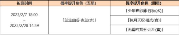 ●活动期间,限定五星角色「兰生幽谷·夜兰(水)」的祈愿获取概率将大幅提升!