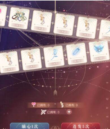 1、进入活动页面点击发射,每次发射需要消耗爱心金箭*1,随机掉落爱心氛围灯、丝带彩灯串*1-3、配饰自选礼盒、养卡资源,发射次数达150次/250次/350次可分别获得1氛围灯。
