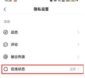 4、在隐私设置的页面中点击【在线状态】;