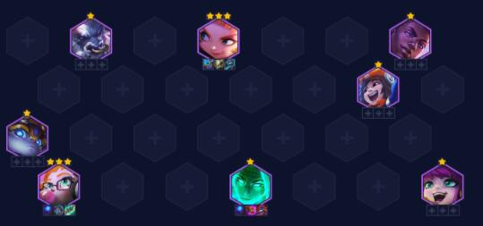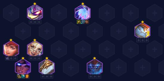 贾克斯体系老阵容了,更新后贾克斯基础技能伤害受到法强影响,这版本数值怪兽又回来了。这套阵容中期发力,吃分算上比较稳定,测试中高斗与机甲搭配各有千秋,机甲的伤害会更高一些,但高斗的吃鸡率却比机甲更稳。但阵容缺点也非常明显,这版本大部分阵容在后期都在开高秘,贾克斯三星晚也就只能吃分。