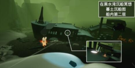 直接来到黑水港湾的沉船位置,最后进入沉船就可以看到冥想点了。