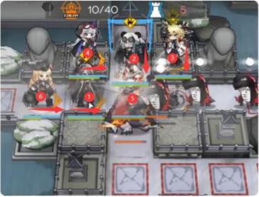 依次部署仇白↓,哞,桑葚→诗怀雅→惊蛰↓然后等10杀大怪来开一下仇白技能,之后再部署食铁兽,不过推了几下感觉应该是位置不对所以没什么用,还是爆炸了。最后下路3个怪来的时候开技能就行。