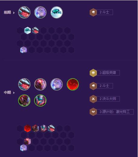 5人口这里优先上出3超级英雄+寒冰,然后亚索和鳄鱼谁质量高挂谁。到6人口后全员到位,再不断卡着利息D牌,为全员追三即可。当场上已经有5个三星卡后,我们就可以一路冲人口了。