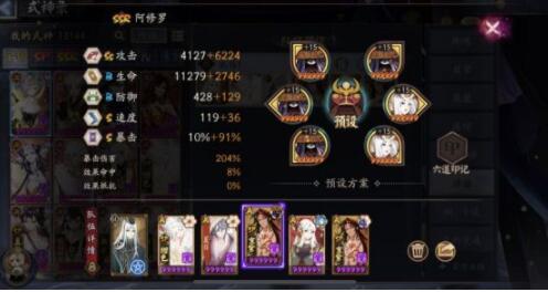 -2号输出:阿修罗、须佐、茨木/海荒、海歌、心荒、心歌/)攻攻暴满暴击速度大于155