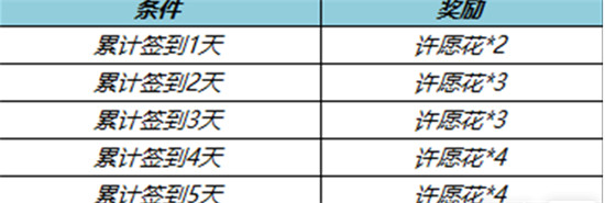 每天签到可以领取的许愿花数量是不同的,持续签到6天累计可以获取到20许愿花;