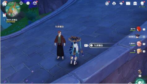 第二步:在天领奉行府前的桥上与九条镰治对话。
