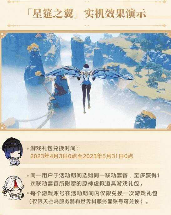 获取方式:活动期间内购任意款必胜客x原神联动主题套餐得「寻珍之旅」限定游戏礼包,礼包内含联动限定风之翼【星筵之翼】