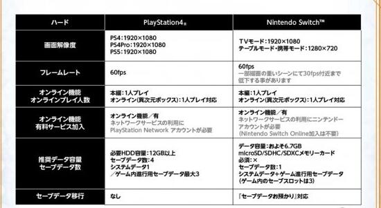 根据对比信息,PS4、PS4 Pro、PS5以及Switch都能以1080P分辨率运行,帧率方面最高都是60FPS,Switch版在部分画面会下降至30FPS。