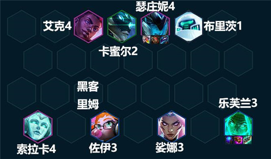 阵容组成:艾克、卡蜜尔、瑟庄妮、布里茨、索拉卡、佐伊、娑娜、乐芙兰