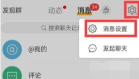 1、打开微博,点击进入消息,点击右上角设置图标。