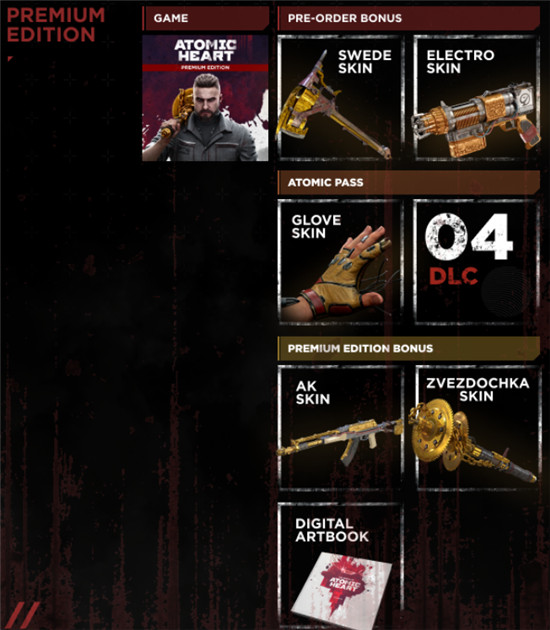黄金版在包含了标准版的内容之后还额外有原子通行证,其中可以解锁四个DLC的游戏内容。