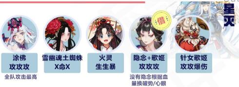 ※追月可换因幡,共潜堆爆伤,锁2技能。速度128>因幡>佛;或千姬,共潜攻攻攻,队伍一速。