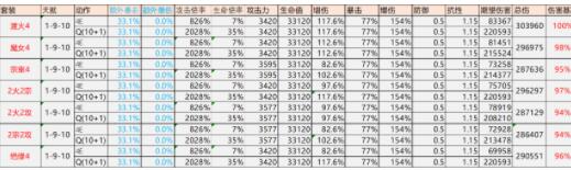 图片解析:以【渡火4】的伤害为基准100%,【魔女4】为98%,则说明【渡火4】和【魔女4】套装伤害差距仅为2%,其他套装同理。