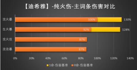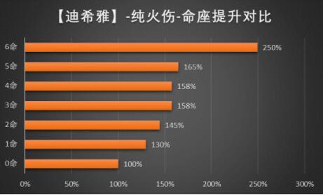图片解析:以【0命迪希雅】的伤害为基准100%,【1命迪希雅】为130%,则说明【1命】相对于【0命】伤害提高30%,其他命座同理。