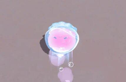 滚动起来的水母尤莱亚,身后留下透明气泡与粉紫雾团的痕迹