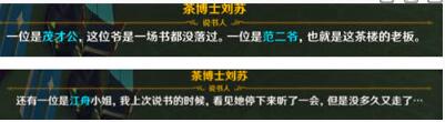 1、与刘苏对话后,被要求找三个人:茂才公、范二爷、江舟小姐