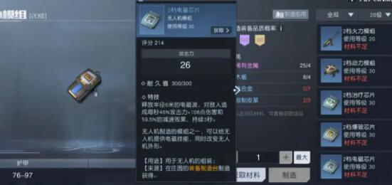 电磁芯片有减速效果,打PVP时无人机可以很好的减缓对手速度,对枪的时候能有更好的命中机会。