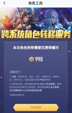 6、最后大家需要之分990(99¥)荣耀币,支付成功之后账号就会开始转移了