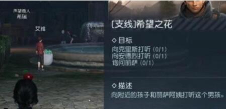 2、在这里就可以找到陌上的小男孩,之后与他进行对话,就可以进行希望之花任务的接取。