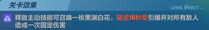 当前关卡的效果为一次延迟爆炸的高额伤害,在使用关卡主动技能前开启武器主动技能(至多三次)可以提高本次黑渊白花爆炸的伤害,所以尽量在使用关卡技能前更多的开启武器技能吧。