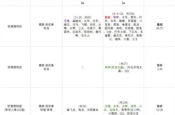 这样的背景下,以“好打,容错率高,不怕意外ct/技能特效,非膀胱局”的要求下,列出的两种铁臂膀对特防型铁臂膀“打击面”的补充能力。