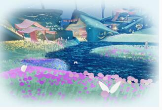 花海渐渐发芽,长满嫩草,可跟随飘舞的花瓣游览花田。