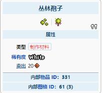 丛林孢子是一种制作材料,通过破坏长在丛林草上且在地下丛林的绿色发光球体获得。每一个球体被破坏会掉落1到3个丛林孢子。