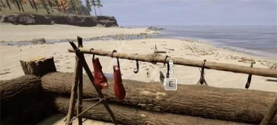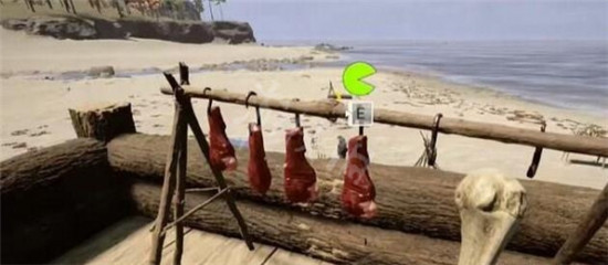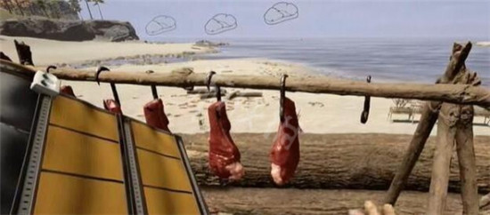1、首先看到了这里只有俩块肉,玩家需要将包里的肉取出来然后挂在挂钩上面,记住一次只挂一个,不能一次挂好几个。
