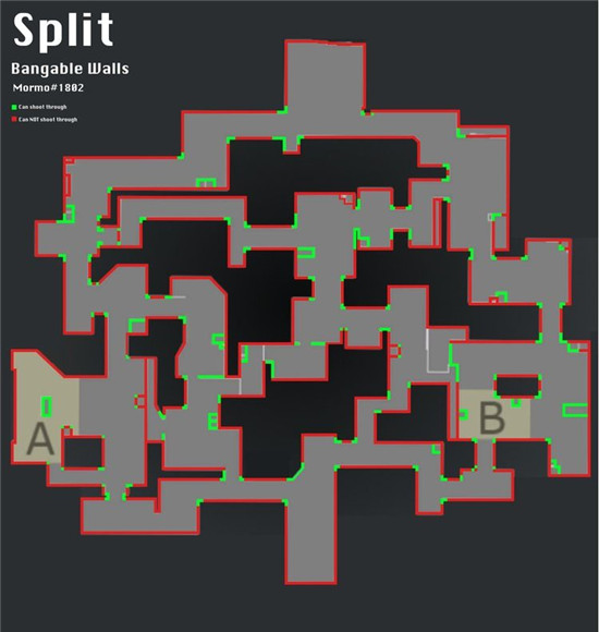 在这三张图里面,Split有着最多的“单向”可穿墙,在接近B点中间mid-b的一堆边角。
